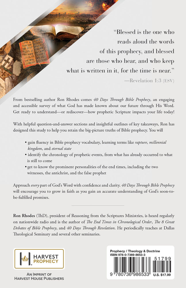 From bestselling author Ron Rhodes comes 40 Days Through Bible Prophecy: an engaging and accessible survey of what God has made known about our future through His Word. Get ready to understand—or rediscover—how prophetic Scripture impacts your life today!