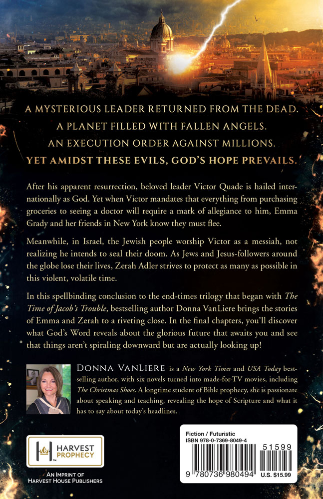 In this spellbinding conclusion to the end-times trilogy that began with The Time of Jacob’s Trouble, bestselling author Donna VanLiere brings the stories of Emma and Zerah to a riveting close. In the final chapters, you’ll discover what God’s Word reveals about the glorious future that awaits you and see that things aren’t spiraling downward but are actually looking up!
