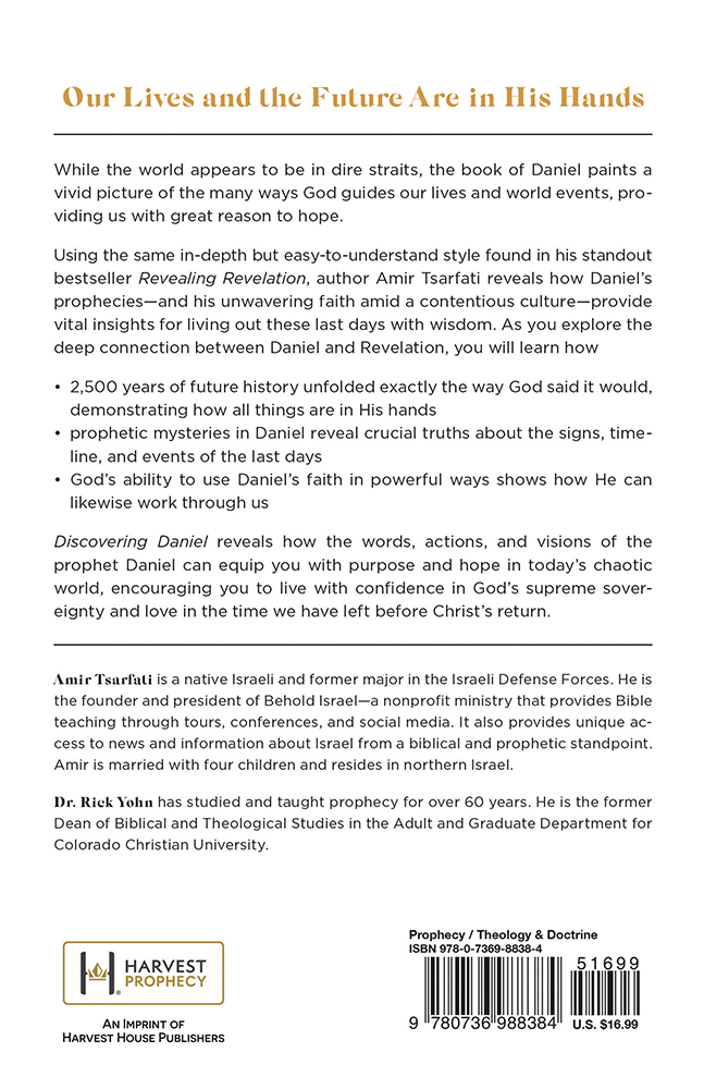 Using the same deep but easy-to-understand style found in his standout seller Revealing Revelation, bestselling author Amir Tsarfati reveals how Daniel’s prophecies—and his unwavering faith amid a contentious culture—provide vital insights for living out these last days with hope and wisdom. As you explore the deep connection between Daniel and Revelation, you will learn how