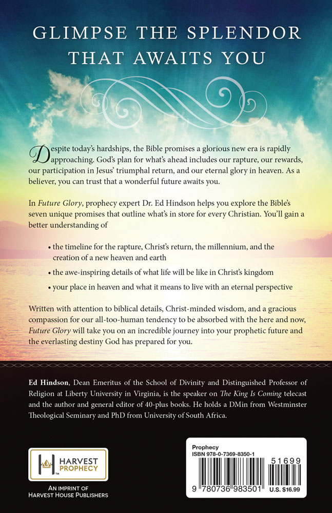 In Future Glory, prophecy expert Dr. Ed Hindson helps you explore the Bible’s seven unique promises that outline what’s in store for every Christian. You’ll gain a better understanding of